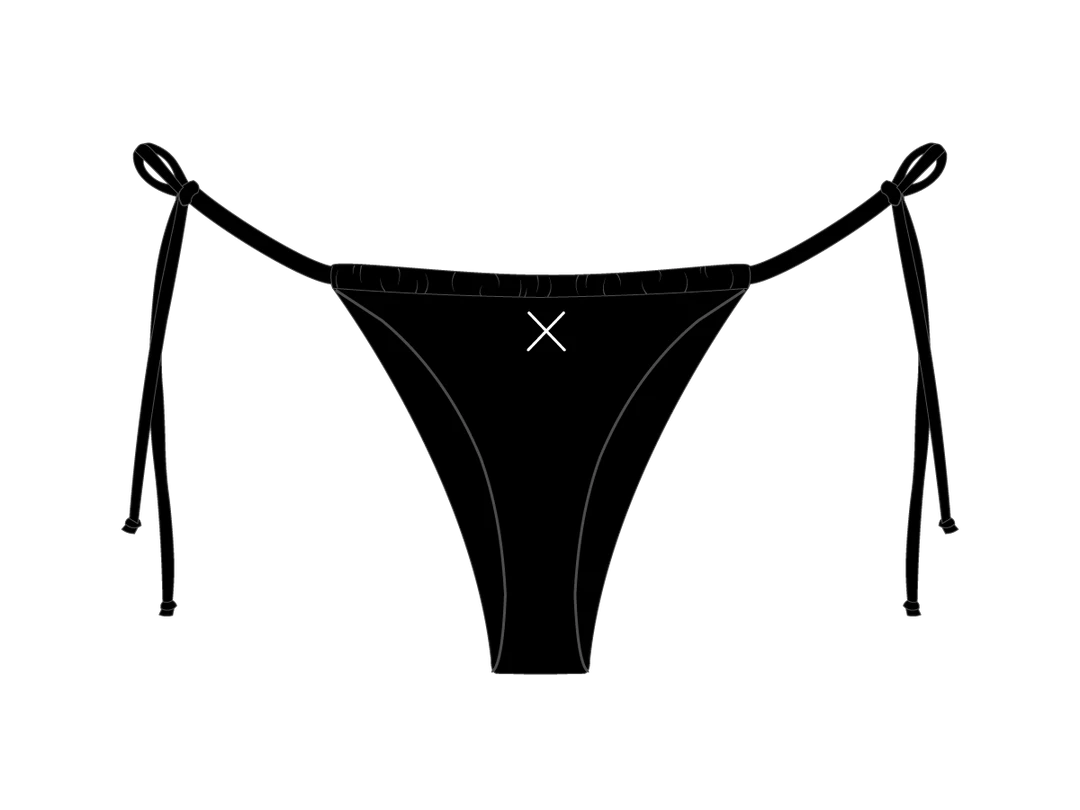 The ultimate string bikini bottom: teeny tiny with ties at the sides and plenty of cheek peek.