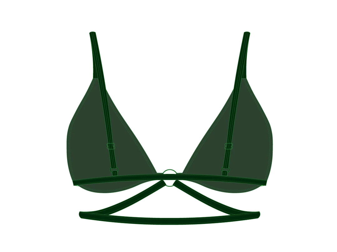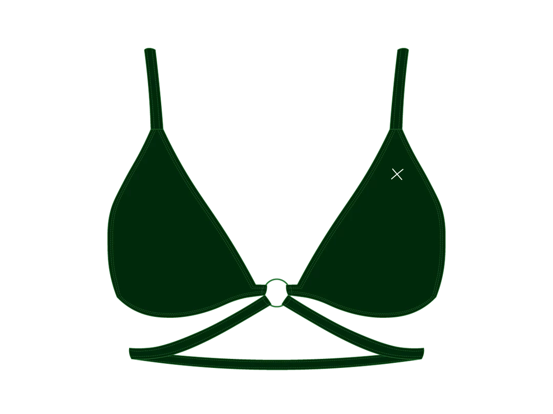 This top is the perfect blend of style and function, a traditional triangle style in front with adjustable straps in the back and an extra strap around the ribs for an added touch. This top also had a large decorative ring in the middle to pair perfectly with the Ringer Bottom.ย